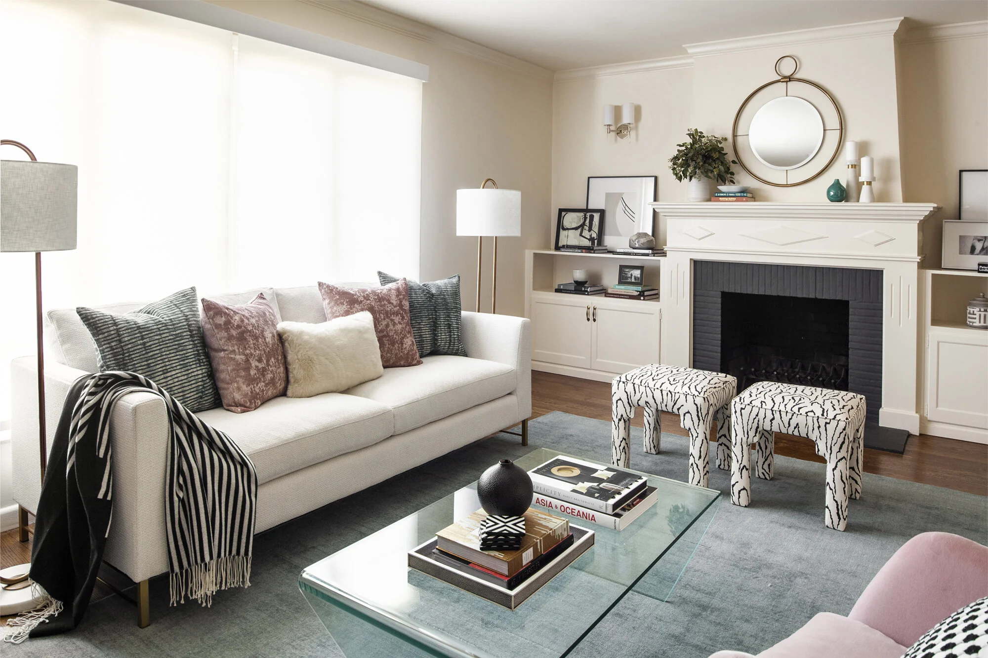 This 1940’s home on a tree-lined street in Burlingame had beautiful elements of traditional style and character. The client, a family with 2 young children, wanted contemporary and polished spaces. We kept the character of an older home while adding a touch of layered, modern glamour to the formal living room meant to be a space for the adults. A bold color statement adds warmth and depth to the dining room, and layers of texture and pattern transform the outdoor patio into an inviting space for entertaining.